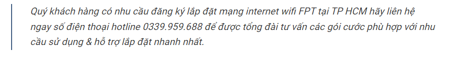 - Tại TP.HCM, FPT Telecom là nhà cung cấp dịch vụ Internet cáp quang tốc độ cao tốt nhất hiện nay trong khu vực.