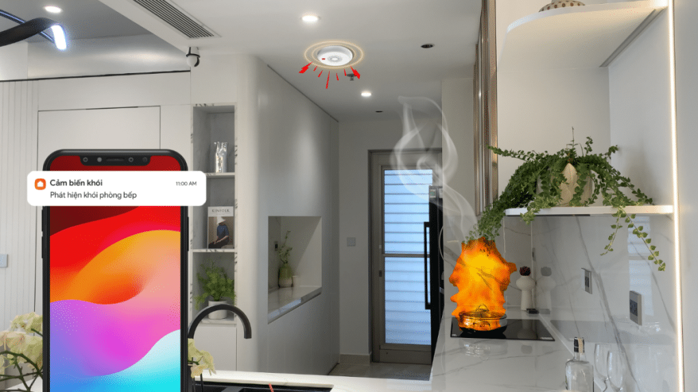 FPT Smart Home cung cấp cảm biến khói với khả năng cảm biến khói siêu nhanh siêu nhạy, dễ dàng phát hiện mật độ khói bất thường khi lớn hơn 0.12dB./m. Khi phát hiện sự cố, thiết bị báo khói sẽ tự động phát ra các âm thanh cảnh báo lên đến 85dB để báo động cho mọi người xử lý, đồng thời gửi thông báo đến điện thoại người dùng trên ứng dụng quản trị.